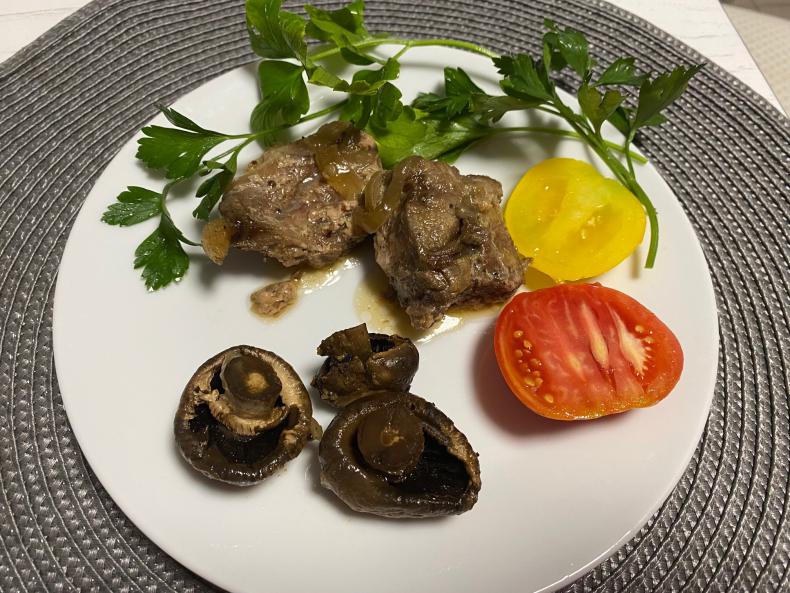 В холодильнике размораживается кусок кабанятины, быстро порезал приправил солью, перцем, луком, острым соусом (чили), маслом растительным и соевым соусом. На полтора часа в холодок, а сами моем шампиньоны и укладываем все в глиняный горшок, все это дело в духовку и 1,5 часа тушим при 200 градусах. Друзья были в восторге от такого блюда…