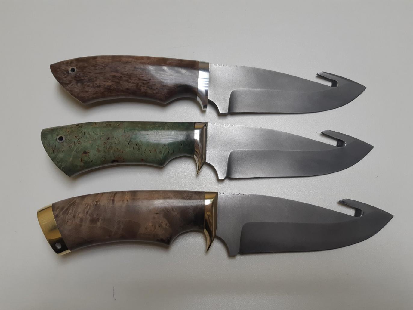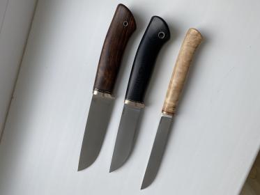 Срок изготовления затянулся по форсмажорным обстоятельствам,поэтому ножи приехали уже на нг.Я успел ободрать только одного козлика,а это не показатель. Ручка к руке приятно прилипает и лежит как влитая .Цена чуть больше 10 т.р(скидка за заказ трех ножей).