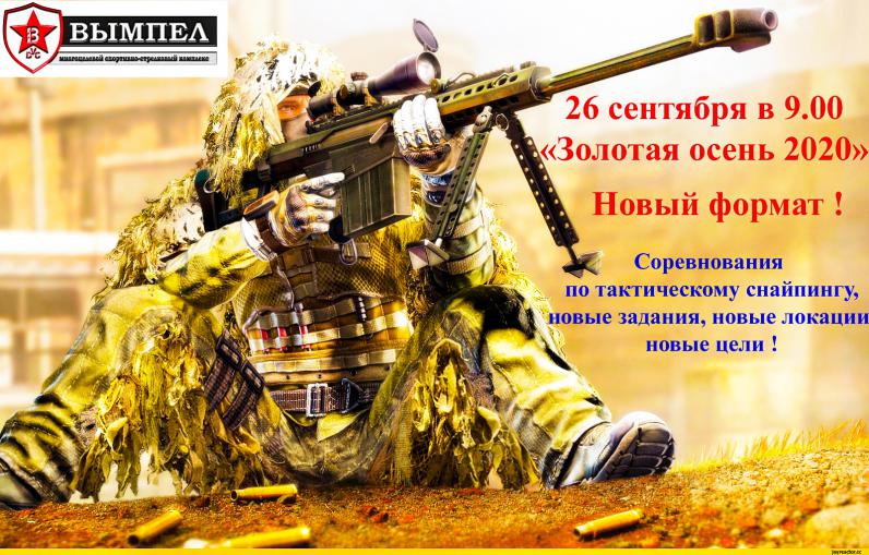 Уважаемые стрелки, охотники и просто неравнодушные к стрельбе! 26 сентября 2020 МССК Вымпел проводит соревнования по снайпингу. 9 упражнений. Дистанции от 100 до 500+ метров. Количество выстрелов - 35+ Положение и брифинги на стр МССК Вымпел https://vk.com/id468056740