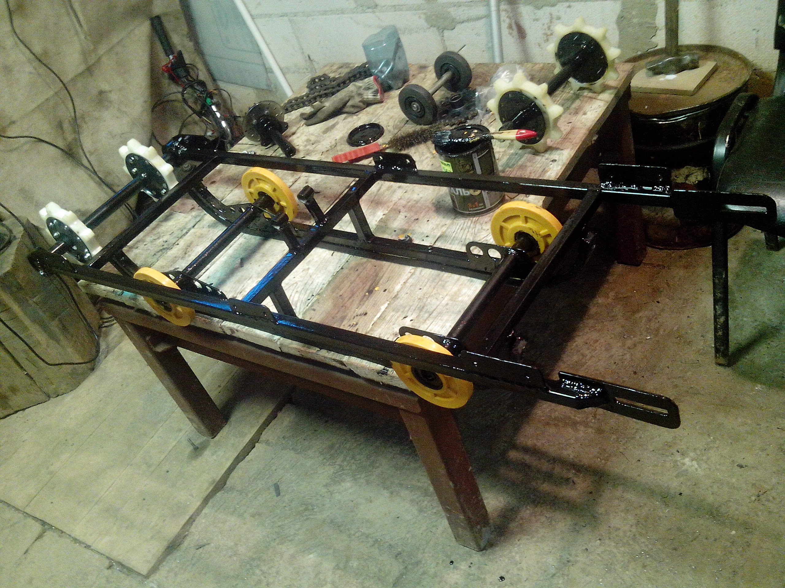 Только с гаража сил на поесть уже нет))).Сегодня практически "добил" ходовку. еще денек и будет готова, можно приступать к изобретению передка.