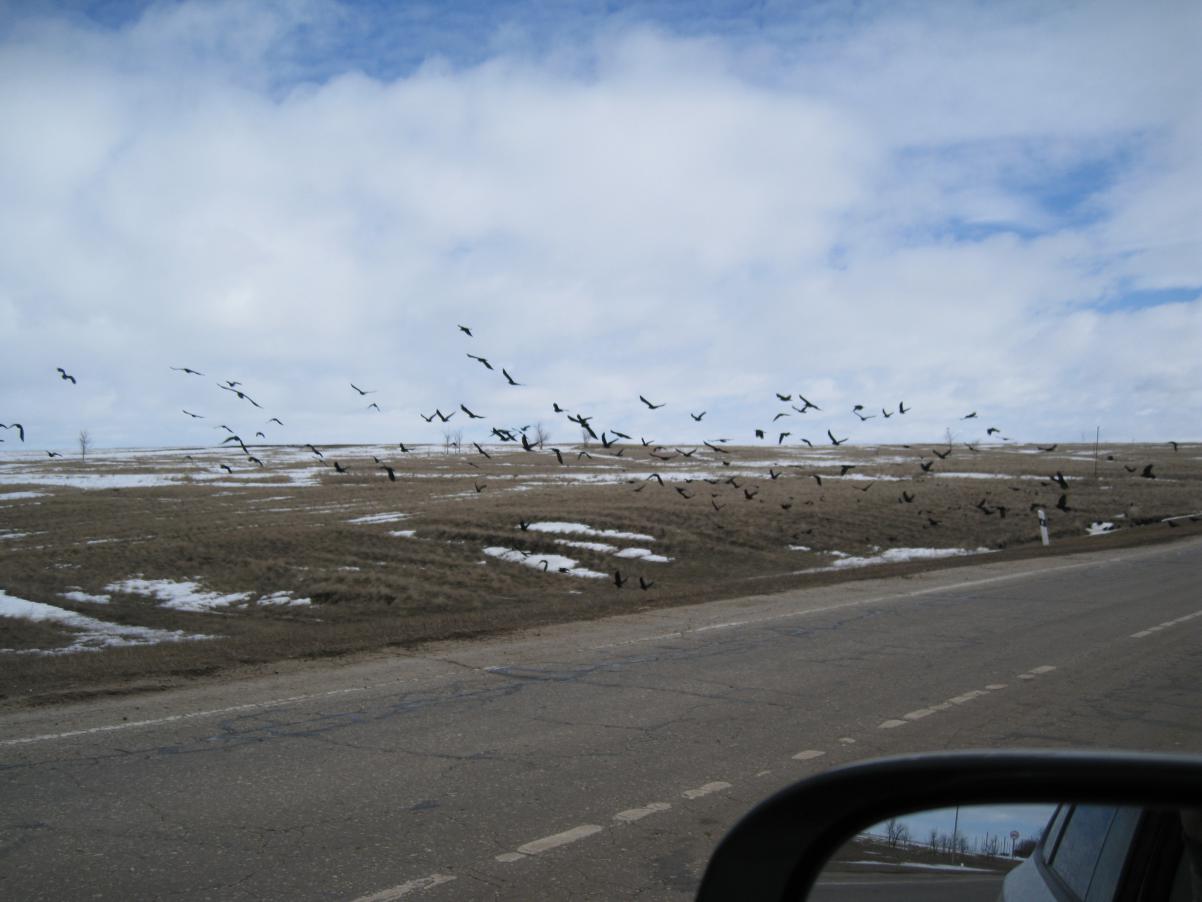 Малые реки вскрылись,видел бобров.По обочинам тысячи грачей.Суслики вовсю бегают.
