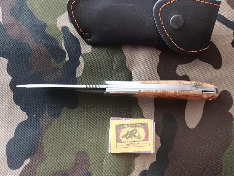 Захотел крупный складной нож. Выбор упал на этот. Купил с простым клинком, а мой мастер его перебрал, заменил шайбы и поставил клинок из хорошей стали. Разобрал им уже пару козликов, птицы кучку. Полет нормальный. Мне удобно. А, для кабана, лося в машине полноценный скинер. При ходовых и загонных охотах не люблю фикс на поясе, а этот складень в собранном состоянии компактен.