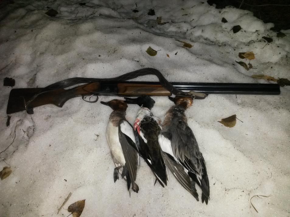 Ездили сегодня в разведку, видели 4 гуся пролетающих, ну и чтоб не соврать, голов эдак 400 утей разномастных. Подошли к ним метров на 70, кряк стоял такой, как в сарае с утями. На поле в луже кормились. Потом эта туча поднялась.