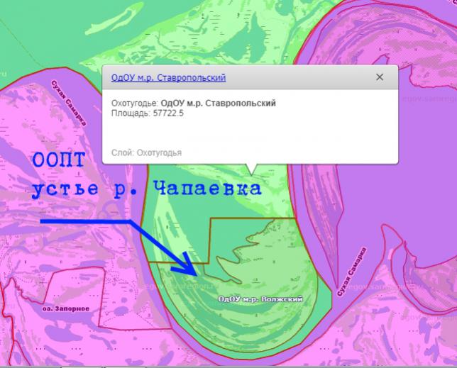 верх - Ставропольский, низ Волжский. Но в Волжском эта территория подпадает под ООПТ с режимом запрета на охоту с 1 апреля по 15 августа: А Ставропольский ОДОУ относится к Северу. Так что - только один вариант. Брать РнД во время Севера, жить в Волжском, охотить в Ставропольском. ..правда там граница по воде проходит, сложно будет определяться..