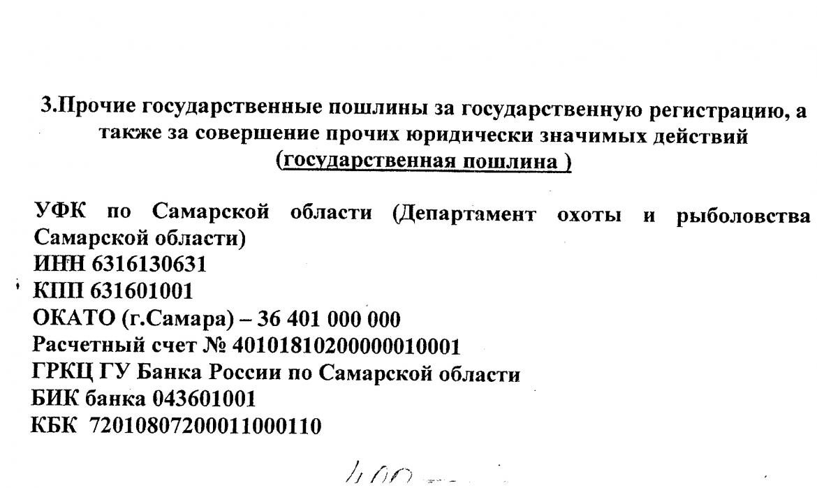 мужики подскажите какие реквизиты по уплате госпошлины необходимой при получении путевок на охоту????? я думаю кто брал путевки платили по этим реквизитам госпошлину, киньте пж-та)))