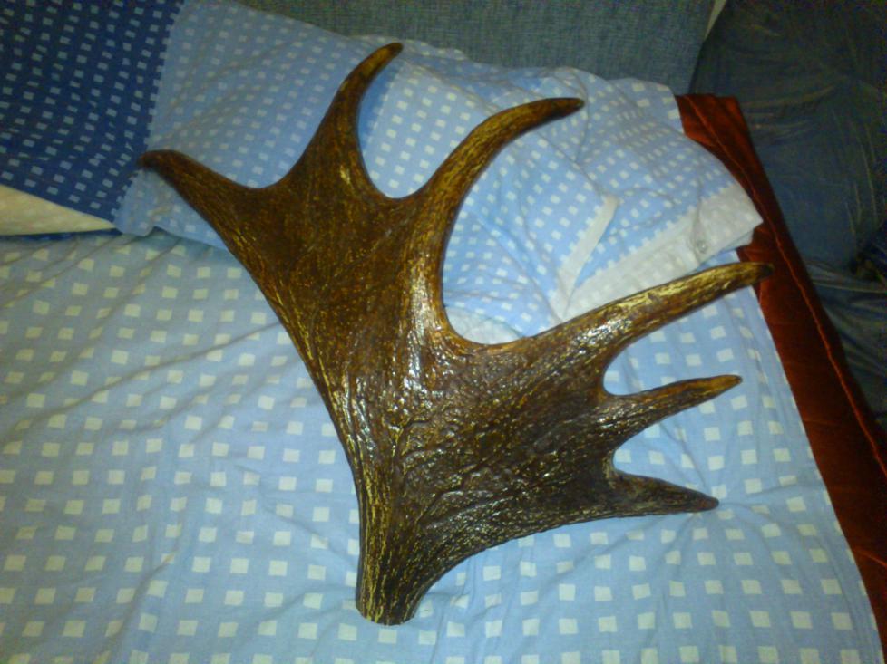 В прошлом году на пруду в лесу нашёл большой рог с лопатой,сколько отростков не помню но рог был большой,там же его и оставил.