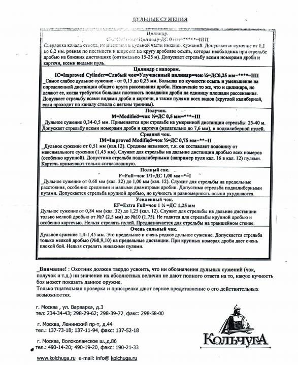 Встали идеально, смещений относительно ствола нет, зазора ровные, ключ Затягиваю от руки, проблем с откручиванием чока не заметил. Выложу параметры чоков, может кому пригодиться (были указаны для Benelli), но подозреваю они едины для любого ружья. Последний раз редактировалось AleksK; 21.06.2013 в 23:47. |