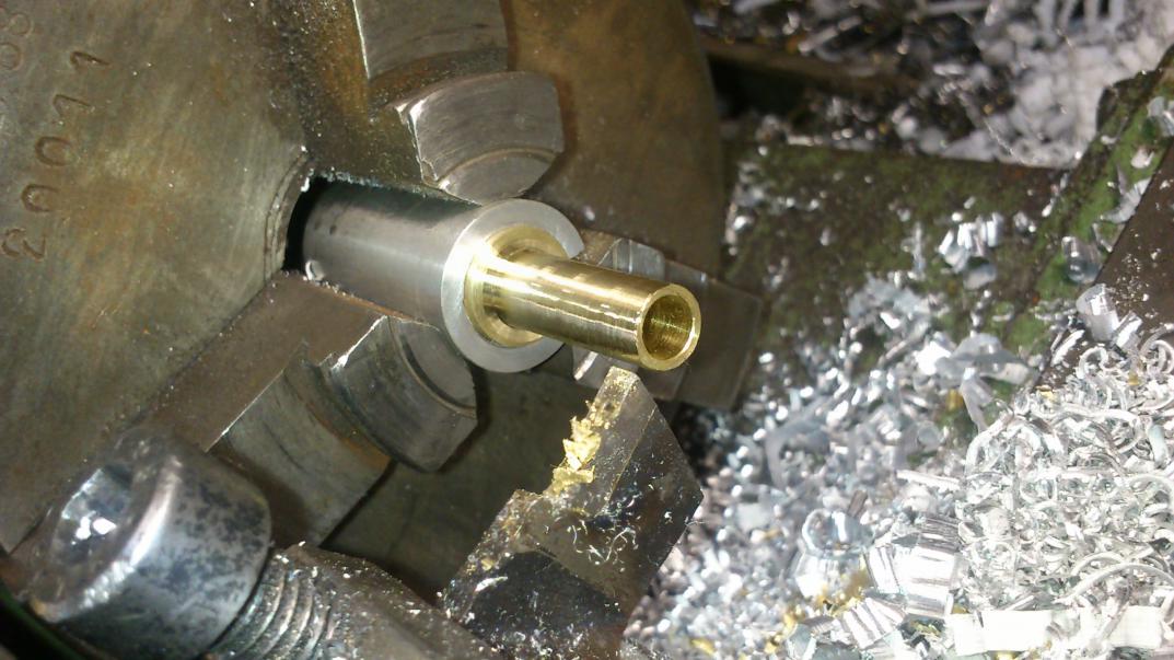 Сегодня наконец-то приступил к сборке.Не понравилось,что мастер делает ствольную коробку как бы универсальную,больше заточенную под 5.5к.Решил переделать по своему,завтулить пульный вход,лотком под 4.5к.вот так,а заодно и перепуск сделать во втулке,а не в стволе.