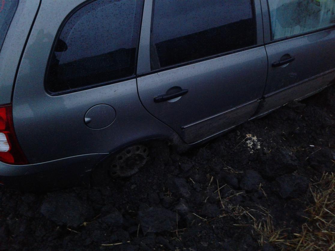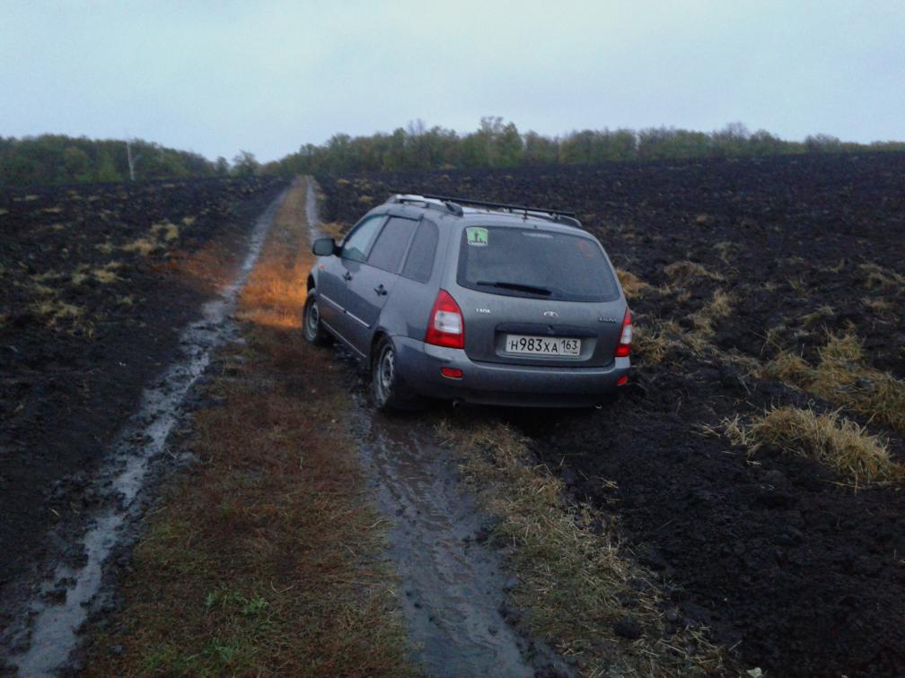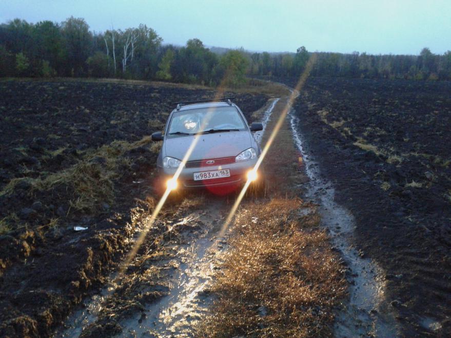 поехали на ПО. в залив усы.туда проехали отлично. а там внезапно дождик нагрянул.дороги полевые глина чернозем, машина а месте шлифует. дороги все распахали фермеры уе.ки.неужели нельзя оставить по пол метра с травой?даже в плотную к леску дорогу перепахали.чтоб у них там не росло ни чего на этих кусочках. в общем как бы мы не пытались выехать, как бы не толкали.чуть горка и все машина встает.пока травка ползет. один участок был без вариантов. с лева пашня с хорошей канавкой с права лес и как назло земляной вал. решили попробовать по другому.но не думали что там такая затяжная горка.машина шла хорошо в принципе зад придерживали.но потом участок с большим наклоном сделал свое дело.машину снесло. время первый час ночи. просидели там до начало девятого часа. дождь, дождь со снегом, +4 ветрище. мокрая одежда.