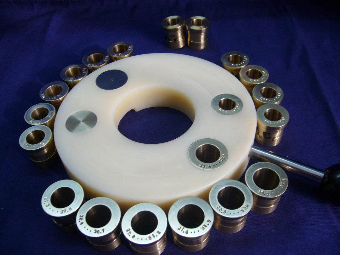 Как таково отдельного дробового дозатора, в наличии нет. Только в составе прессов и на мерных втулках (бушинг). Для дробового отмеривания, как самый оптимальный и более точный. Исходя из своего конструктива, отмеряет (PW-375) до №2 дроби, крупнее в ручную. Про дробовые УМ (регулируемые) не скажу, так как нет в наличии.