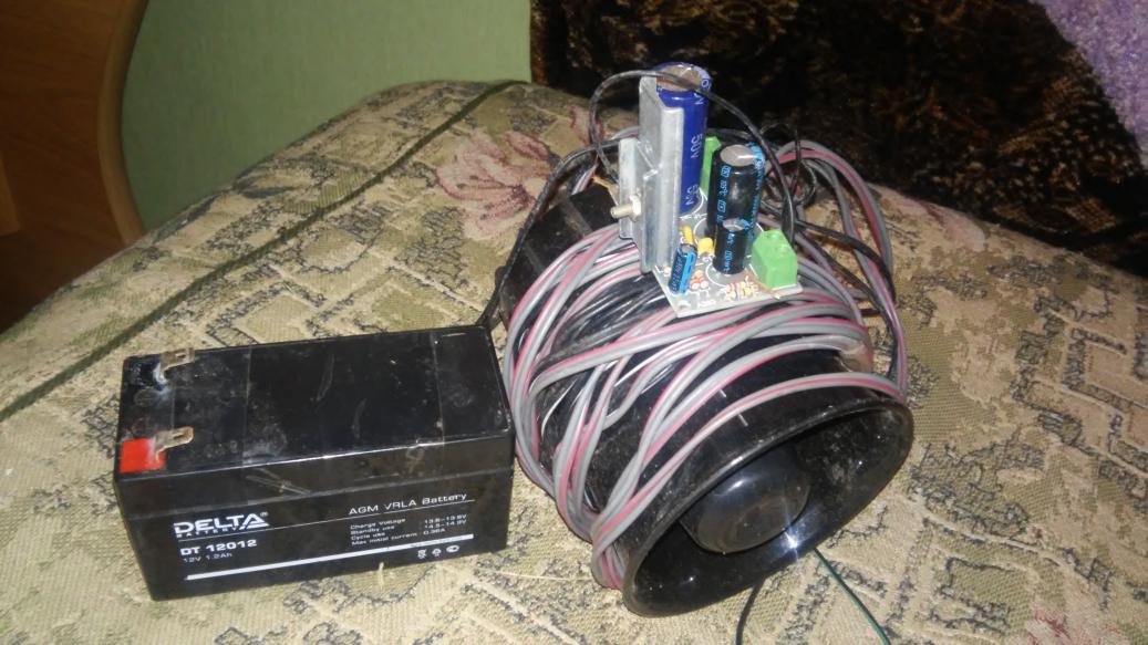 Не буду плодить новую тему. Хочу предложить самодельный эл.манок. Фото, к сожалению, нет возможности сделать (пока). Только на следующих выходных. Состоит из рупора сигнализации, платы для усиления звука, акк-ра и проводов. Нужно только подключить его к МР-3 плееру или смартфону/телефону. Можно использовать для прослушивания музыки на природе/даче))). Фото из инета. Начальная цена 700 р.