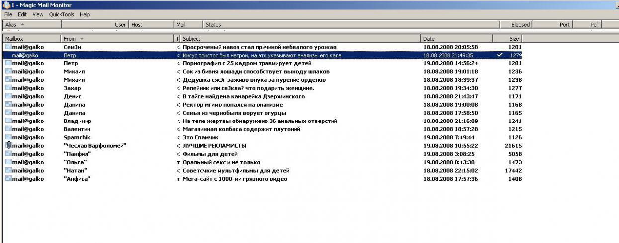 девочка-магнит живет в метро 8 лет в ОВД Басманное ликвидирован гей-бордель в детском оздоровительном крематории "Уголёк" найден подпольный цех по изготовлению пластилина Путина положат с Лениным валетом молдованин насиловал кошек разводным ключом балерина Большого Театра подкладывала в трусы стекловату первый иракский мюзикл «Аллах суперзвезда» Илью Лагутенко воспитал бородатый краб третья грудь как признак элиты бомжи с манежной площади построили ракету из банок «Старого Мельника» 20% мяса для киевской шаурмы составляют жители Москвы московское метро вырыли крысы гомосекуальные акты во время почётного караула в Александровском Саду московский мавзолей переоборудуют под МакДональдс Крупская изменяла Ленину с Гарри Гудини Микки Мауса придумал Сталин эксклюзив: матерные стихи Ленина ученые научились делать леденцы из нефти Банк Москвы принадлежал Бобу Марли по ночам холодильник пожирал продукты Алсу пропагандирует анальный инцест неисправный грамофон стал причиной бытового убийства первоцветы из Чечни на московских вокзалах прокладки старушки отравили колодец резня в дельфинарии кровавая драма в Планетарии снаряд времен ВОВ нашли немые следопыты в новом фильма Бондарчука Пугачёва сыграет Наполеона порнография с 25 кадром травмирует детей подольские школьники торговали школьными унитазами в песочнице обнаружен труп свадьба закончилась пересадкой волос аукцион Сотбис продает внутренности Ленина заказное изнасилование на юге Москвы наркомания лечится катышками со свитеров атипичная диарея убила троих прыщи - первый признак гениальности женские прокладки способствуют возникновению угрей авианосец «Авраам Линкольн» перевозил китайские лосины морским пехотинцам запретили испражняться саблезубые еноты похитили сельскую учительницу результаты допинг-теста: мыскина - трансвестит мересьева сбило НЛО: редкие кадры в столичных аэропортах введут анальную слежку пойман курьер с грузом красной икры в анальном отверстии генномодифицированая шаурма отравила ворону дедушка сжёг заживо внука за курение орденов внук убил бабушку из-за изюма брат убил сестру скакалками в общественном туалете обнаружен отравленный вантуз просроченый навоз стал причиной небвалого урожая 20 китайцев нелегально проживали в коробке из под калькулятора citezen 13-летние подруги изнасиловали бомжа для съёмок порно-картины семья из чернобыля ворует огурцы раненый сыч нашёл своих хозяев миллиционер застрелил собаку, кошку и китайца фанаты донцовой оккупировали здание детского мира москва стоит на месте индейского кладбища плевки рабочих заельцовского завода помогают при галопирующей диарее коттеджный поселок на рублевке оккупировала стая ежей Путин публично извинился перед морскими котиками Ленина убили канцерогены магазинная колбаса содержит плутоний в школьной столовой учеников кормили грудью шаровая молния ударила мальчика, теперь он предсказывает курс Доу Джонса в квартире безработной жещины скрывалса украденный питон из московского зоопарка Иисус Христос был негром, на это указывают анализы его кала в подвале дома обнаружены останки первобытного бомжа неполноценные школьники 12-го интерната калужской области похители 57-летнюю женщину и мычали 4 недели кошачий наполнитель лечит аденому сок из бивня лошади способ