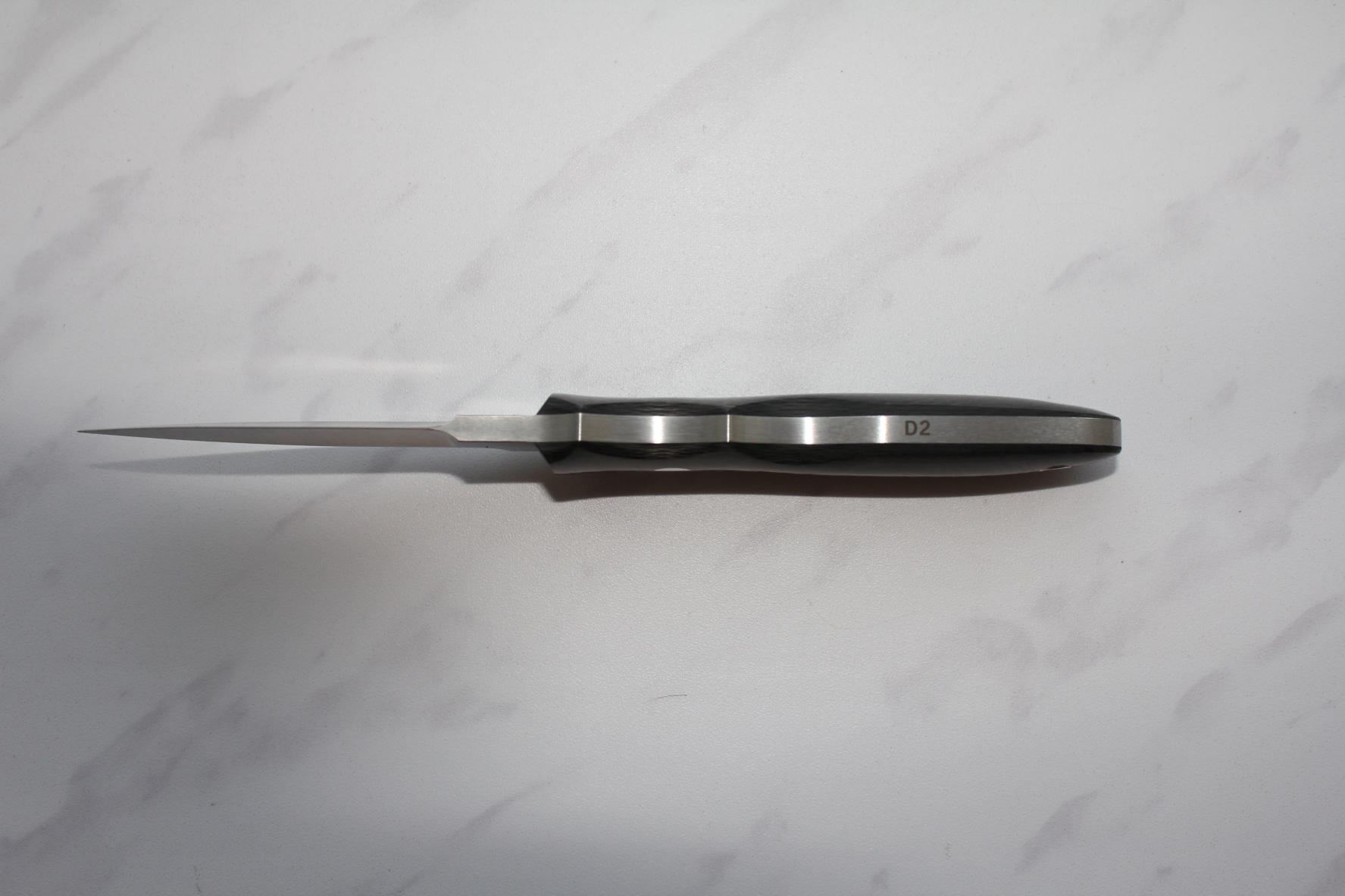 2. Самодел из кованного клапана, оказался одинаковой твёрдости Златоустовским ножом под дамаск(или это и есть домаск) 56 ед.