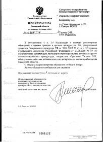Не видно ни чего, но если в двух словах:"Перенаправлено Самарскому межрайонному природоохранному прокурору Корнилову Е.И."