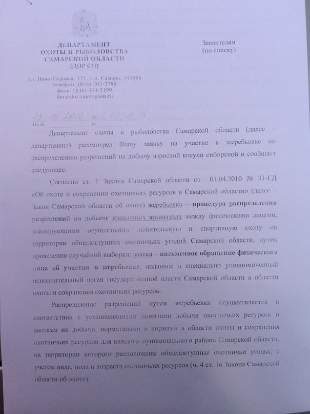 Ответ депа по жеребьевке