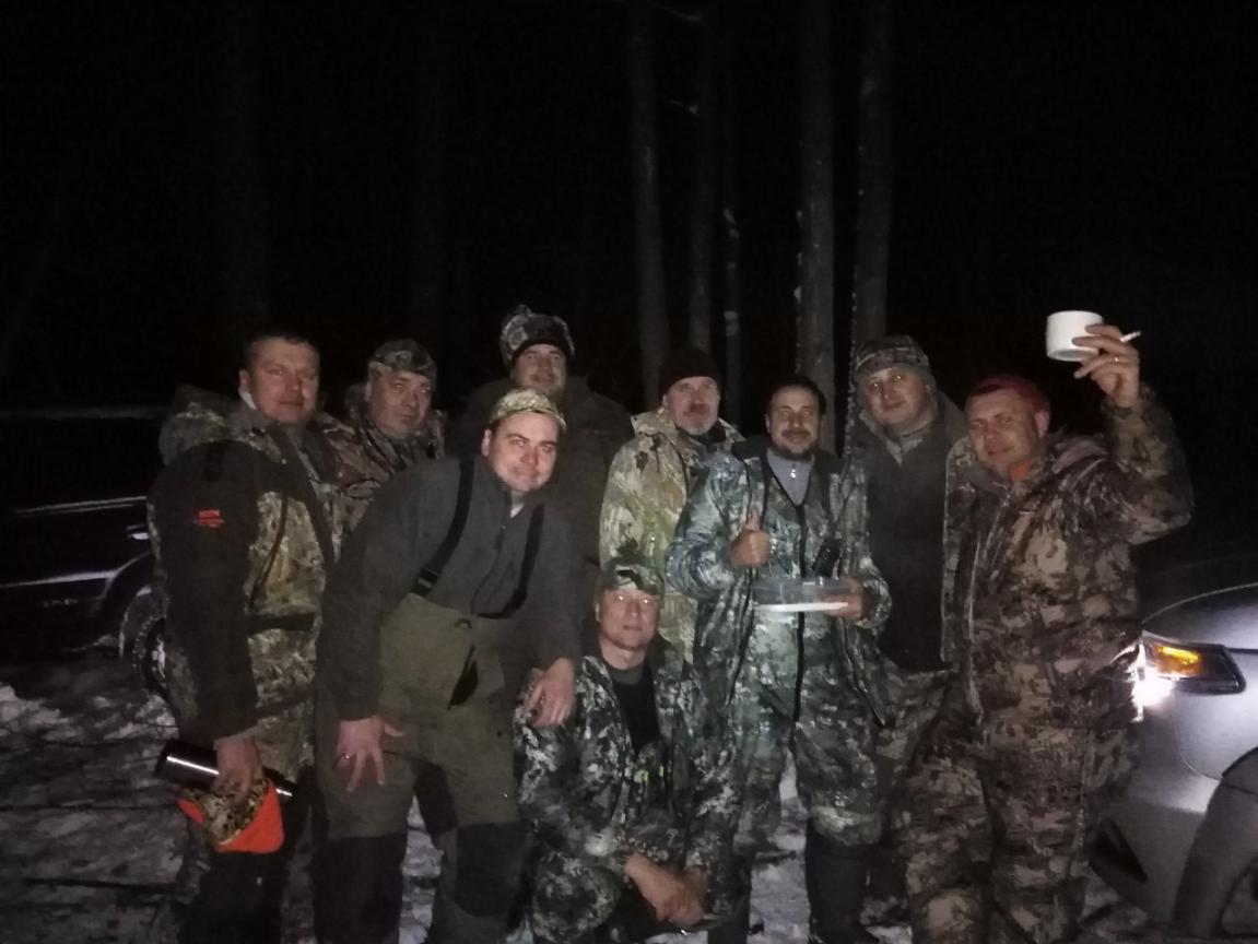 Пригласили нас с друзьями в Ульяновскую область на охоту на Лося. Все стандартно и обычно, коллектив надежный, проверенный. К отстрелу взрослый самец и сеголеток лося. По всем правилам прошли инструктаж по ТБ, пожелали друг другу «ни пуха ни пера», включив рации пошли на номера. Впервые видел смешанный загон (загонщики и собаки) в котором загонщики не издавали звуков, а просто шли за собаками – не понравилось. Как итог звери уходили два загона подряд мимо номеров. Загоны были длинные, часа по 2 – 2,5 видимо из-за того, что лоси уходили от собак «змейкой», расстояние всего 1 км. Уже под вечер, почти в темноте в третьем загоне был добыт прекрасный, крупный сеголеток лося, опять же в загоне, не на номерах… Потом разделка, дележ и отдых. На кровях немного выпили и быстро в родную область… Хорошо время провели, надышались, умотались, наговорились с единомышленниками про любимое хобби. Коллектив с полем!