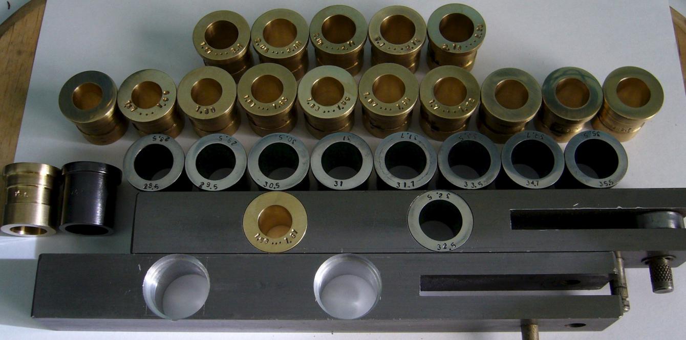 На своих прессах, добился (довел) оч. хороших результатов, на пластинчатых порохах разбежка в пределах 0,02гр. Работаю только Бушингами с шагом 0,1мм. |