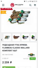 Спасибо! В Самаре остался один комплект. Оформил заказ на два. Жду связи. А пока можно обсудить) Как они? Ну и в сравнении с GHG. В комплект входит 6 чучел, 3 селезня и 3 утки. Это нормально по количеству 50 на 50? Последний раз редактировалось DimOK; 19.04.2019 в 05:55. |