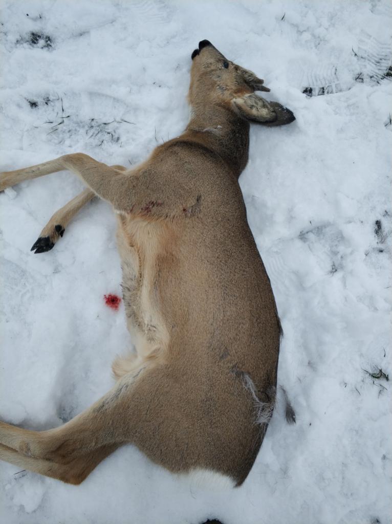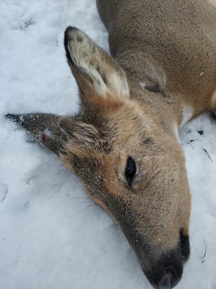 иду по кровавому следу, ко мне выбегает пес другого загонщика и уходит по следу...3минуты и лай, бегу подранок сидит на заднице и делает выпады на собаку, собака опытная, работает аккуратно, выстрел . Готов!!!