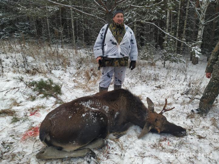 В этот год не хотели в Удмуртию,а пришлось...Кабанчика закрыли у нас..Звонок другу в Ижевск,ответ не порадовал,бумаг на лося в знакомом хозяйстве нет....Но нашел в другом.Там никто из друзей не охотил...Решили попробовать..Выезд в воскресенье в ночь,жилье не нашли...Приехали утром,переоделись,короткий инструктаж и в леса...Охота получилась одним днем,хотели остаться на кабана на следующий день,но луна на все небо испортила планы...в итоге взято два экземпляра с трех загонов...в понедельник неспеша вечером были дома...