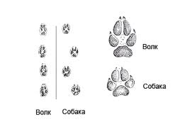У волка внутренние две фаланги на лапе более вытянутые, если сравнивать с собакой. И идет он в строчку прямую. У собаки след сами знаете какой.