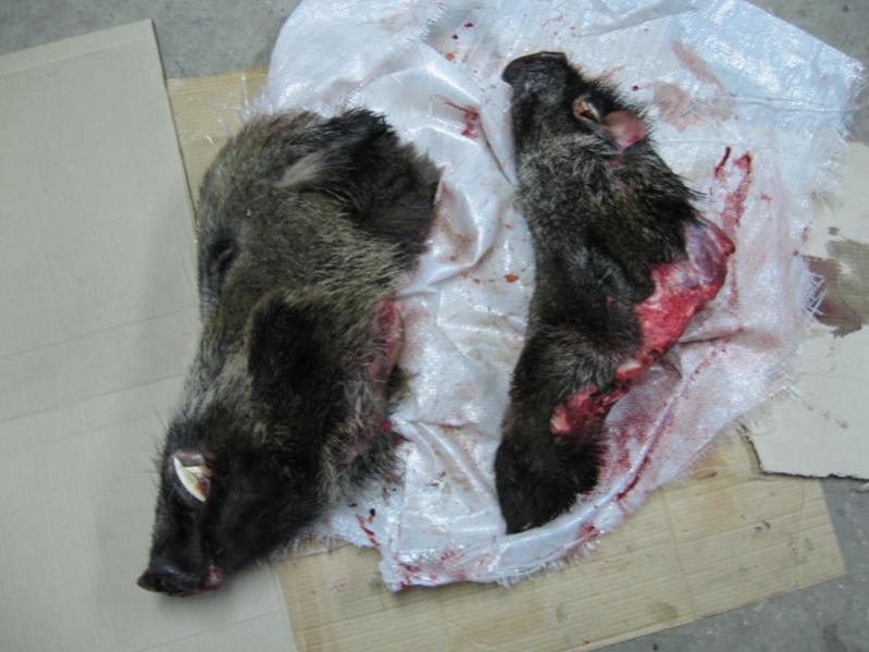 - Хочу порекомендовать начинающим охотникам "трофейщикам", как лучше !! Не буду говорить ((правильнее)) правильно у всех по разному, срубать клыки... -голову переворачиваем, извлекаем язык -вставляем палку между нижней и верхней челюстью, чтобы при рубке зубы не сломались друг о друга. -начинаем с нижних клыков, срубаем нижнюю челюсть, отделяем -подставляем что то, под верхнюю челюсть и рубим краем топора (верхняя часть - хрящ) -срезаем лишнюю мякоть. |