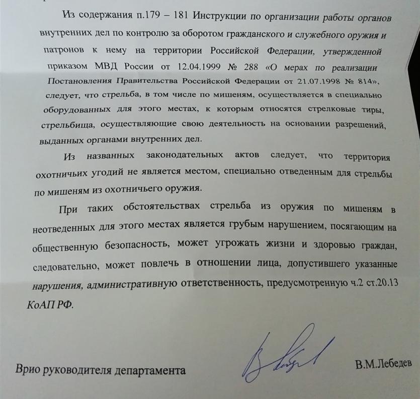Пришёл официальный ответ из депа на счёт стрельбы по тарелочкам и мишеням в угодьях. Короче нельзя!!!