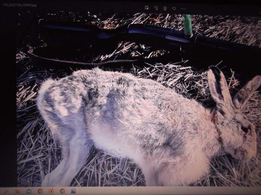 Открылся сегодня у частника. Погода просто песня. Зайца поднял протопав всего с пол часа. Выскочил спереди метрах в 5 и был добыт в угон одним выстрелом метрах в 20. Две дробины в задок одна в глаз. Дробь №1. За фото извините, с телефона не грузится,пришлось перефоткать на цифровичок с экрана ноутбука. В следующий раз буду с фотиком на охоту ходить.
