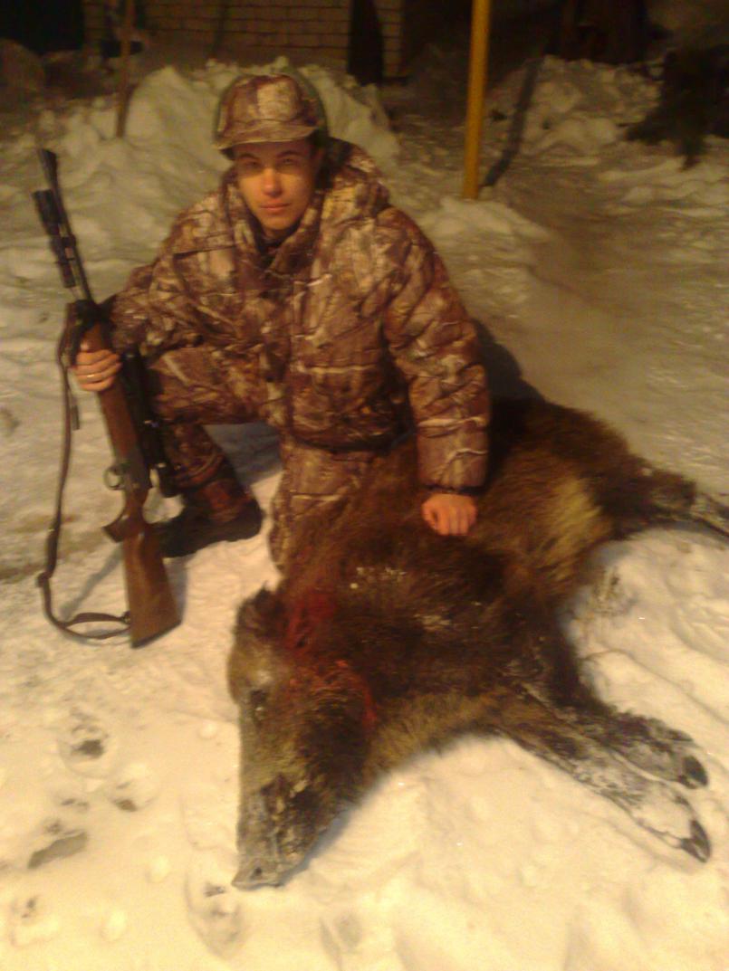 Вчерась, наконец трудового кабасика взял. В соседней области.. три дня караулил в кукурузе, матёрый гадюка. Фотика не брал, но адреналин ого-го. Метров на семь вышел и зарычал, когда фонарь включил. Лазер в глаз, туда и попал - пуля совестер. Лёг сразу. Мясом 170 кг, секач, ещё не воняет. Вообщем пар выпустил.