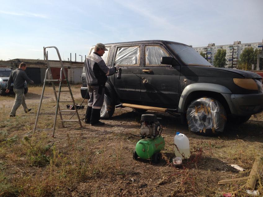 С ретушью- довольный хозяин, принимавший активное участие в процессе. Правая сторона сверкает на солнце, покрытие нанесено пару минут назад. И даже с Москвы выгоднее приехать к нам, чем переплачивать там)))