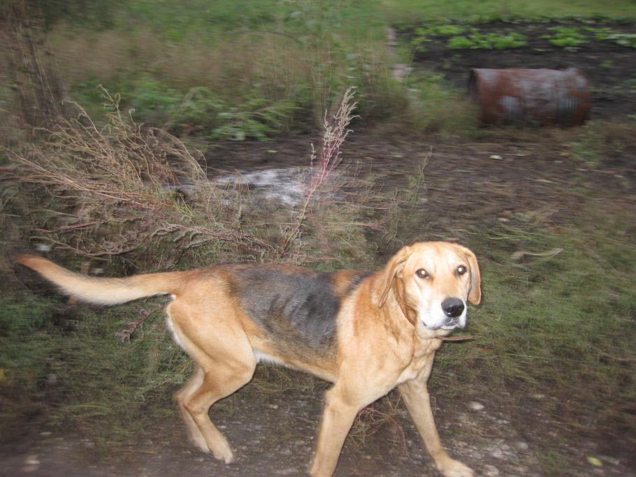 У друга на дачу пришёл выжлец- гончак. Исхудал бродяга. Возраст на вскидку года 3.
