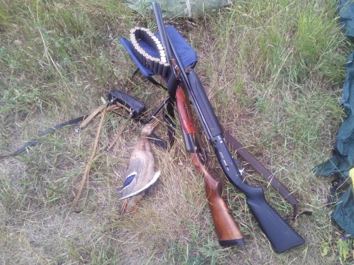 В этом году было решено открываться на Волге, и вот в пятницу вечером всем своим коллективом из 8 человек выехали на моторках на острова, в семь часов вечера поехали выкинули в трех разных местах чучела при этом подняв несметное количество утки разных видов, по приезду на берег выпили по 50 грамм и съели последнего весеннего гуся, нетерпеливые м...ки уже с вечера начали стрелять, и вот звонит будильник 3:00, протираем глаза выходим из палаток а на улице ливень, половина нашей команды сразу изъявили желание поспать, но не тут то было всех удачно погрузили в лодку и проехав пол пути были приятно удивлины тем что кончался дождь. Нас двоих высаживают в резиновую лодку с мотором,сами на двух лодках уходят в другой залив и мы едем по кувшинкам через минуту начинается кананада и одновременно паника, что до нашего места еще 500 метров, винт забился водорослями и на веслах лодка тоже ехать не хочет, я вижу над головой утку, бросаю быстро весла, вскидываюсь и она падая, почти попадает к нам в корму, и тут чудесным образом мотор поехал и через минуту лодка была уже в камыше, мотоутка на воде вместе с чучелами. и понеслось утки разных пород Чернеть, Красноголовый нырок, Чирок, Кряква, Серая утка, лысухи, тоже попадались правда специально их никто не стрелял. В 7 утра все резко прекратилось, вдвоем мы собрали 11 уток и одного бекаса. Приехали ребята у них тоже было с добычей все нормально, на толпу взяли 30 штук за утрянку. Дальше по рюмке и щипать потом сон и опять на охоту. За вечер взяли еще 18 штук. А на следующее утро уже ни кто ехать не хотел, у кого болело плечо, у кого голова, а у кого просто кончились патроны.