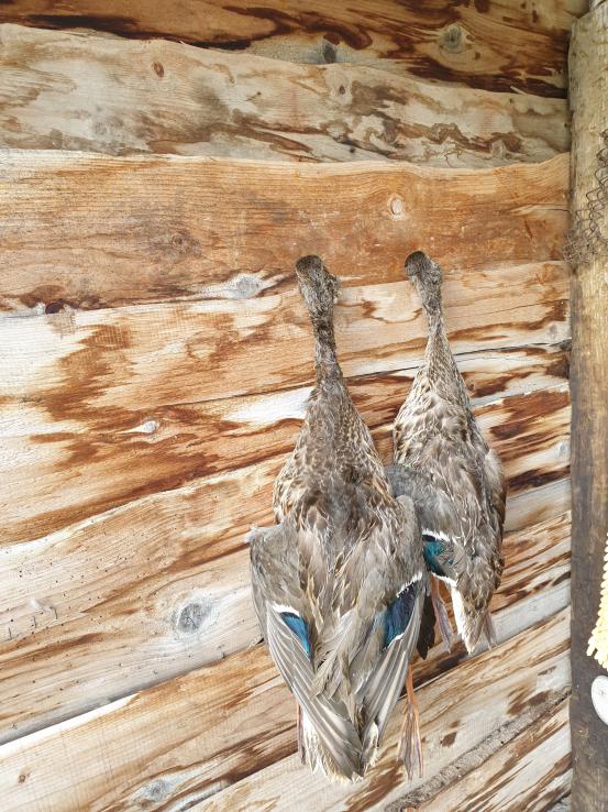 Пришлось спешно менять локацию. Только встал, налет со спины пары чирков не сверхзвуке (вроде даже качнуло звуковой волной), дуплет в угон.....мимо. К счастью удача не подвела и дала еще один шанс, на этот раз два крякаша, один из которых уехал со мной. Однако крупный экземпляр. |