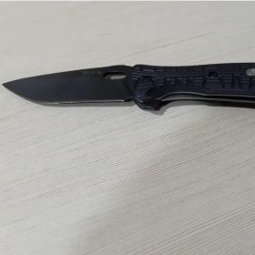 Чисто полностью нерж корпус из простенькой нержавейки. Довольно мягкой. Был протестирован с клинком из клапана на удары, рубку и т д действия хозяйственно полевого назначения. Нарубить веток, расщепить ветки с ударом по обуху и корпусу. Всё выдержал. Не сломался, не стал шататься. Осевой простая заклёпка из клапана. Лишь свободнее ход клинка стал при открытии закрытии.