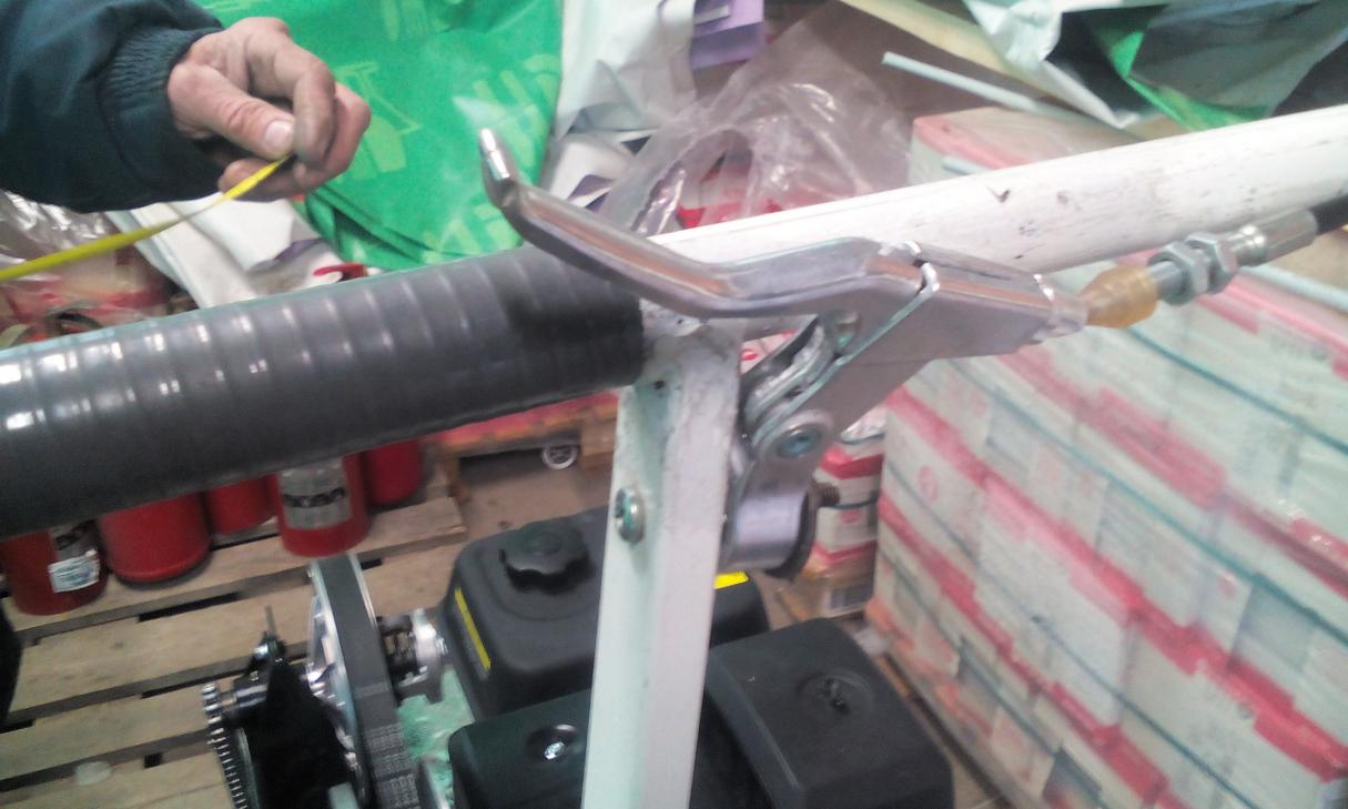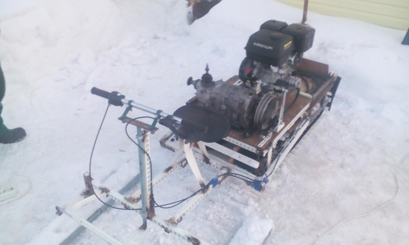 Установили нормальный привод дроссельной заслонки, из рулевого кардана и вала сделали фаркоп и дышло саней, поменяли свечу и немного покрутили карбюратор.