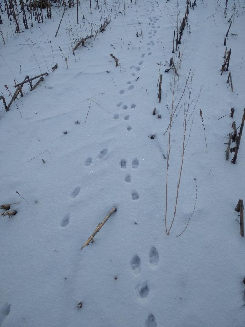 Вчера днём шел снег. И у меня засвербило. Выбрался первый раз в этом сезоне. Рванул к своему любимому овражку. Справа поле убранного подсолнечника, слева пашня. Жаль озимые здесь не сеяли в этом году. Даже боюсь оценивать сколько километров прохерачил за 3 часа по снегу. Очень много лисьих следов свежих, этой ночью гуляла хищница. И похоже, что не одна. Потом эти ровные цепочки даже раздражать стали. Где заячьи то?!!! Овраг длиннющий, заканчивается небольшим озерцом. Решил переправиться на другую сторону и обследовать противоположный склон. Видел одинокого снегоходчика , который заметив меня быстренько прыгнул на своего дурконя, и резво дёрнул восвояси. Чего испугался? Не такой вроде я и страшный. Наконец наткнулся на заячий след, но он явно старый, не прошлой ночи. Идти по нему нет никакого смысла. Потом ещё несколько похожих заячьих петель было, но все не свежие, припорошены снегом. Косые этой ночью жрать не хотели, видимо. Зато лисьих следов прорва. Обратно к машине шёл, еле ноги волочил. Надышался воздухом до одури. Ни одного зайчика так и не увидел. Ну ничего, это только начало. Верю, сидит где-то под кустиком и ждёт меня мой заяц-мутант на 10 кило.