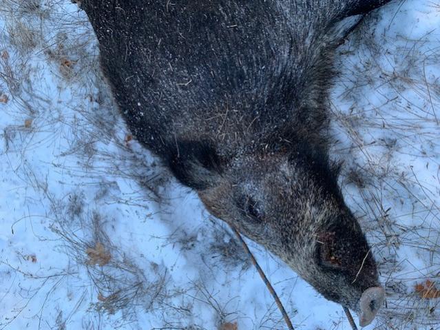Итог охоты – 1 огромный секач и 2 небольших кабаненка – подсвинка!