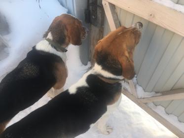 С подветренной стороны подошел вплотную к лунке в снегу, заглянул - никого не видно, но четко виден входной след, выхода нет - заяц там. Отпятился метров на 5 назад и косой выскочил, отпустил метров на 15 и первым выстрелом его остановил.