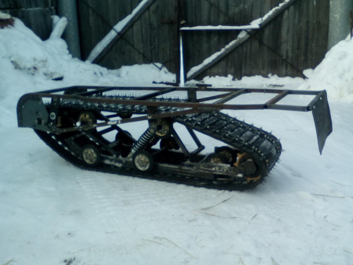 Думаю, что двигатель нужен будет не менее 15 л.с. А ходовая очень даже ничего! Жень молодец, что не бросаешь свою идею. А я все никак не могу накопить на гусеницу, хочу от "длинного" Бурана.