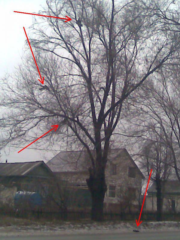 оставил я на ночку фильку с ананасом, утром глядь (в 11:00) ананасы туда - сюда по оврагу и некоторые даже кругаля наварачивали над подсадными, но не садились. достаю винтик, манок, прячусь в тераску наматывая бинт на винт и о Чудо! 30 рыл кружат периодически садясь на тополя. Сын (6,5 годов) заявил что пулять будем по очереди: