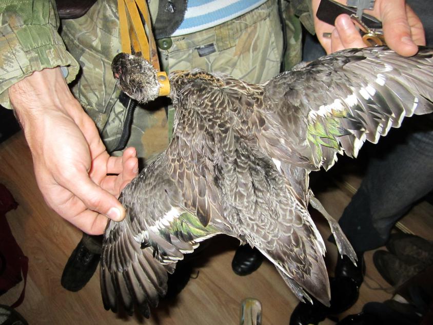 Лет очень слабый, но все что подлетело удалось приземлить, а что не летало вытаптывалось ногами: лысуха, чирок (аж лопается от жира), 2 свиязя, крыжень и серая утка. Вот такая разношерстная добыча.