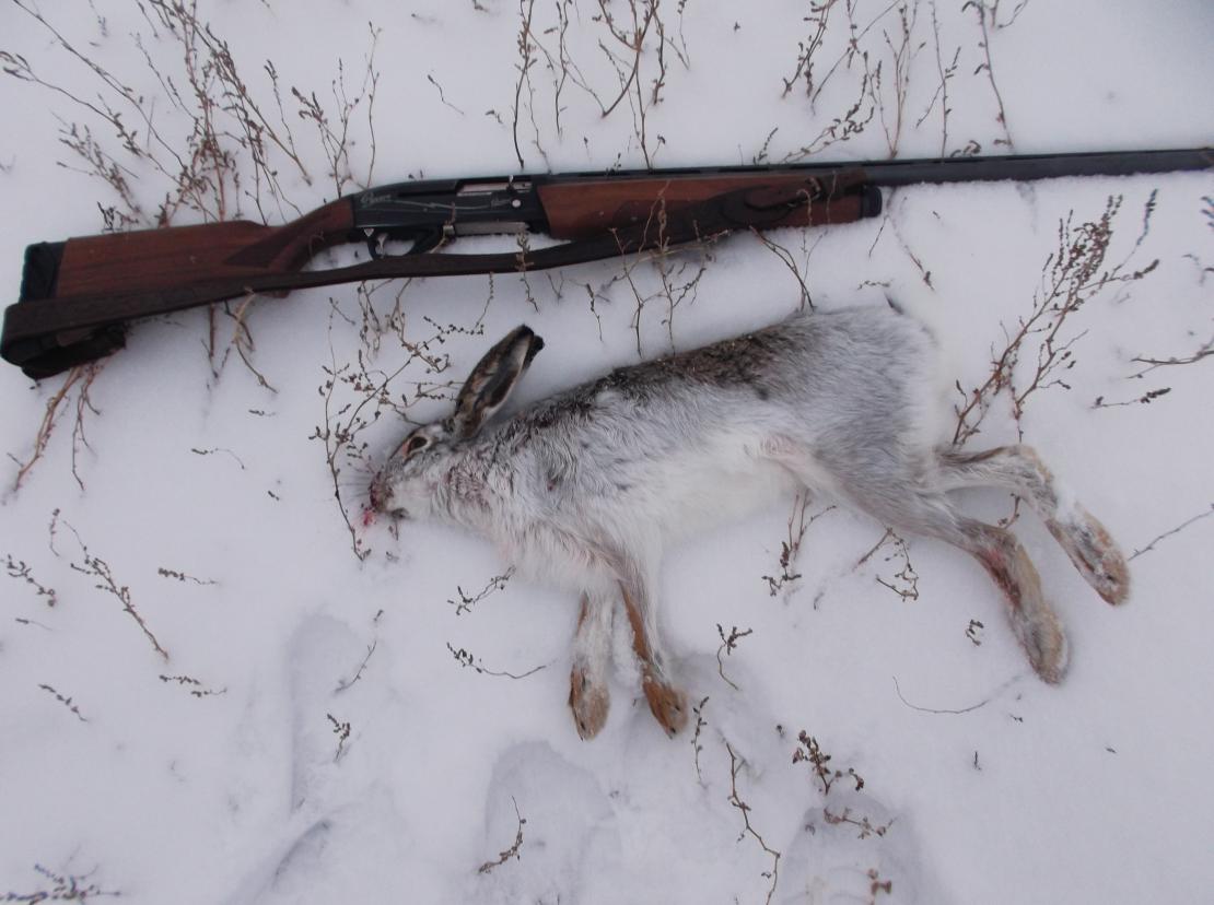 Сегодня наконец то взял зайчика 2020 года. Выходов 6-7 были в пустую, то следы в лесок непролазный приведут , то просто заяц обманывал- вставал сзади пока я сдвойки распутывал и незаметно убегал. А сегодня поехал после ночной смены посмотреть как дела со следочками после вчерашнего снегопада. Сделал кружок километра в 2- нет следов ( хотя раньше всегда здесь были). Переехал поближе к селу. Прямо с дороги увидел подзаметённый вчерашний след . Пошёл по нему и не прогадал . Метров через 50 уже начались свежие наброды зайца и сразу сдвойки. И вот она скидка прямо в море осоки высотой с 1,2-1.5. Делаю всего пару шагов в осоку и впереди метрах в 5 подъём зайца. Первым (феттер№3 )мажу, а вот вторым ( феттер магнум №0) взяв небольшое упреждение попадою зайцу прямо в голову.Ура -взят, оправдались мои надежды на это место. От машины ушёл всего метров на 150 не больше. Вписал зайку в путёвку и домой свежевать пока тепленький.