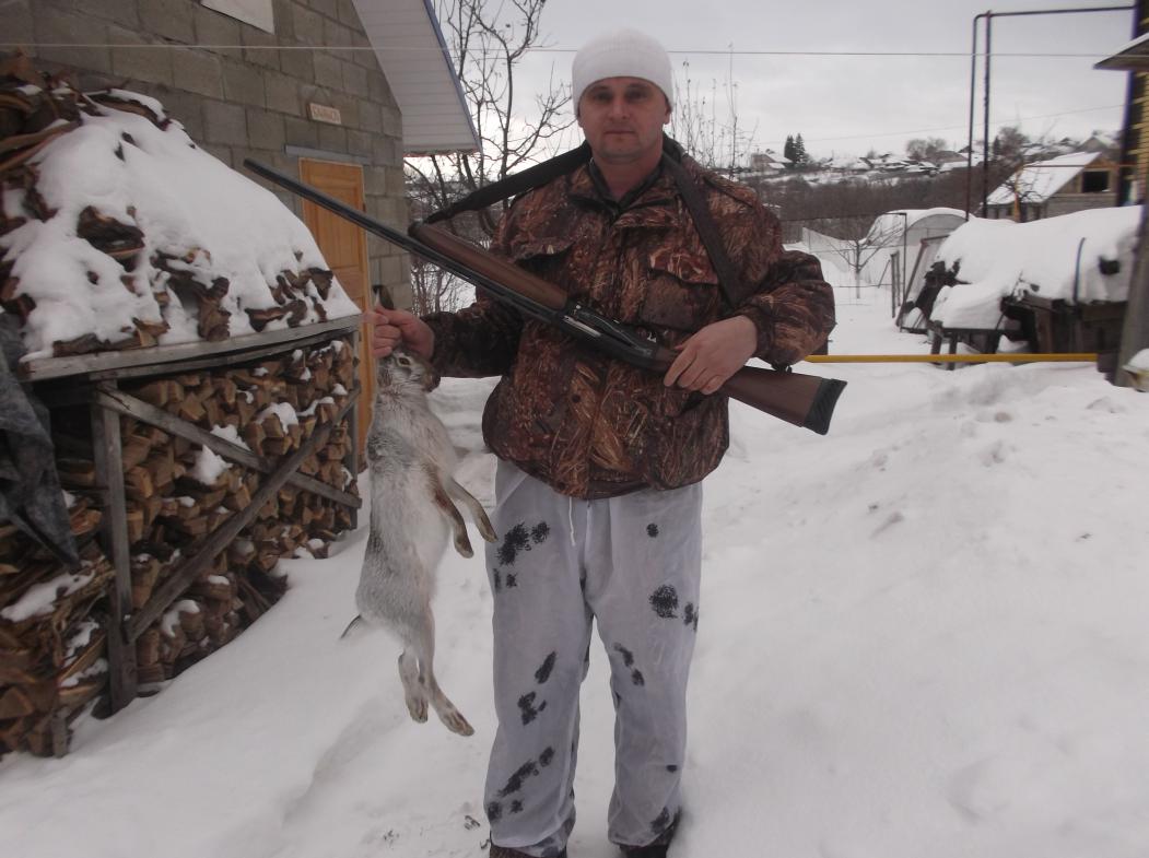 Наконец то и я открылся у себя дома -в Самарской обл., а то только в Ульяновской и везло. А начиналось всё сегодня не очень хорошо. После ночной смены дома сидеть не мог - снег не идёт. Но и решил прошвырнуться по перспективным местам. В районе Нура съехал с трассы, встал на лыжи(первый раз в этом году )и пошёл вдоль посадки в три ряда. Лыжи скользят хорошо ,хотя чувствую что ветер теплеет. Иду .Радуюсь ,что кроме меня сегодня ни кого ещё не было. Но и следочки только от лисы. Заячьих не видно. Прошёл метров 600-700 и вижу едет мне на встречу снежик. Радость пропала сама собой. Понимаю ,что дальше идти нет смысла . Жду когда ко мне подъедут. Хотя бы спрошу поднимался ли заяц за ночь или нет. Но два парня на снегоходе со мной общаться и не думали. Свернули не доезжая до меня метров 100 в поле и до свиданья. Обиделся я на них и пошёл назад к машине. Снег вдруг резко стал липким. Так что к машине я уже подходил пешком. Домой возвращаться как то стрёмно , вроде бы только ушёл. Решил проверить окрестности около Белозёрок. Еду по трассе -охотники чуть ли не на каждом съезде. В одном месте три внедорожника с прицепами под снегоходы. Думаю пипец охоте. Отъехал подальше ,оставил машину на обочине и попёрся пешим по колено в поле. Следов ноль. Делаю круг км.на 5,и возвращаюсь по пахотному полю к машине. Снег пашню сравнял. То провал на 30см то на кочку наступишь. Со стороны- как пьяный в стельку идёшь. То и смори ногу подвернёшь. И вдруг метров за 300 до машины след . Наконец то . Иду троплю. Через глубокий арык да ещё с подъёмом в горку полз на пузе(встать не реально- проваливаешься по яйки).Начались сдвойки ,стройки-потерял. Немного вернулся и вот она скидка. Иду по следу к кустикам ивняка и вдруг боковым зрением с лева вижу движение. Стартанул от меня ,и вижу только его зодницу. Стреляю на вскидку и первым (единичка)попадаю по задней ноге,а он бежит .Вторым (тоже 1) ещё раз попадаю ,он переворачивается ,визжит но опять бежит. Третьим (0)мажу .Четвёртым(0)достаю -останавливается но стоит на ногах. Пятым (1)-всё падает. Первый выстрел был метров на 30 ,последний за 50.Радости полные штаны как не как а первый заяц в сезоне . к стати до машины по прямой было не больше 120-130 метров . а я делал крюк в 5 км. Лёжка была в 30 метрах от трассы. Дошёл до машины ,сделал запись в путёвке и отзвонился жене и довольный поехал домой . Когда дома разделывал тушка была ещё тёплой. Доволен очень.