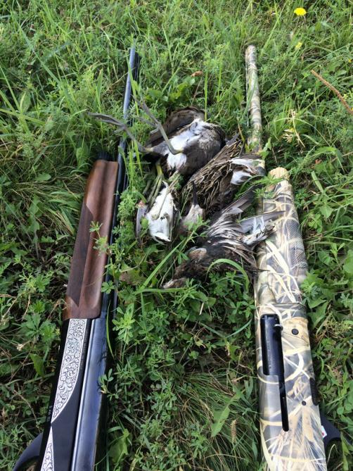 Мое открытие прошло в угодьях "Сускан 2". В отличии от везунчиков не смог выдвинуться в пятницу, хоть и на разведку все же доехал. Объезд обозначил перспективные места и кучу народу, которые "отхватили кусок послаще..." Не возможность спокойно сидеть дома подтолкнули к дополнительной сборке патронов, специально к данному открытию, так же принял решение на охоту с новой насадкой Кикс Смок. Не спал... в 2-00 подъем, мчимся в угодья. 3-30 на месте, пьем чай, собираемся (стрельба уже началась). На лодке дошли до места, не занято, бросаем чучела и в кусты. Во круг стрельба такая, как будто война... нет уток... время идет, стрельба есть, нет уток. Налет - есть кулик... Кстати кулики в этом году жирненькие, в зобах пшеница одна... Опять налет - два кулика... Про товарища не пишу, захочет сам отчитается. Уток нет... Расстройству нет предела - открытие и ни одной утки. В 9-00 причина найдена - место перепутали и встали не там((, получилось до дороги очень близко. Сон. Вечерка. Дошел на лодке до берега и пройдя сто метров (во круг ни кого - кайф) слет кряквы в 15 метрах, бита чисто одним выстрелом. Более нет утки. На берегу встретились с товарищами с форума, попили чай, по рюмочке и в люлю, завтра утрянка... Подъем в 3-30. На лодку и ухожу на большую воду... Классически расставляю чучела, маскируюсь в камыше жду... Первый налет через 10 минут - вторым выстрелом широконос мой (аж дыхание сперло от радости). Через несколько минут налет пары кряковых в лоб - досадный промах, поздно увидел... Следующий Налет слева шилоховости - бита чисто (сеголеток) первым выстрелом. Несколько печальных и не очень промахов, все это высокий камыш, который не дает нормального обзора и дичь видишь поздновато. Налет в лоб - бью, первый, второй, третий - молоко, четвертый уже за спиной - есть!!! Подранок, добрал догоняя на лодке - красноголовик. Потом еще был подранок, который так и сумел уйти, час кружился я - без толку. Итог прост - насладился сполна открытием, испытал патроны, Кикс и Чучела от Сергея KbuHto отработали отлично. Ну и такого жаркого открытия, в плане погоды, не припомню...вымотала конкретно. Всех открывшихся "С полем", кому не повезло - все впереди, мужики.