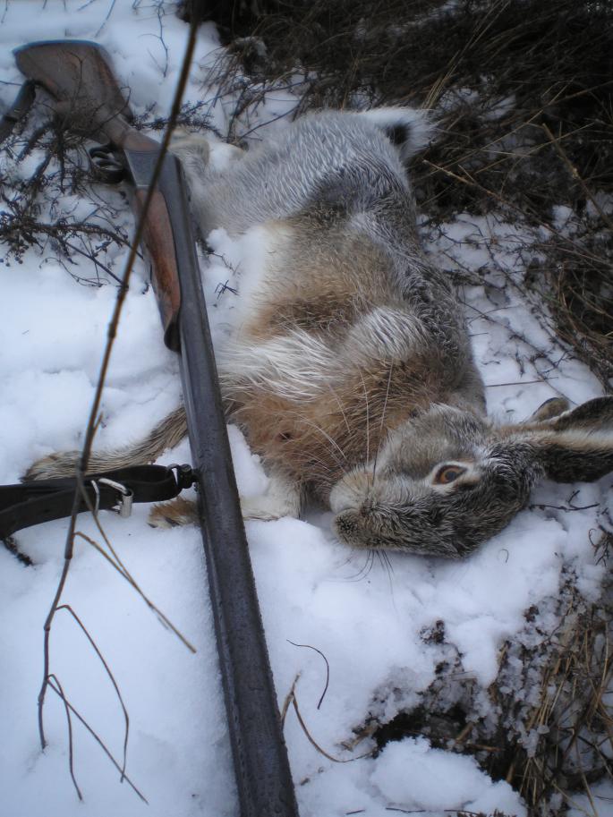 Вот. Как-то пару недель назад. Молодая выжловка толкнула из чилиги чуть вспискнув... Я приложился... паффф.. зая кувырк и слабым ходом в лес... Плакса от выстрела в овраг, пулей, к старой выжловке((( больше ее в течение 5 часов никто не видел))) Но потрошки ей очень понравились)))