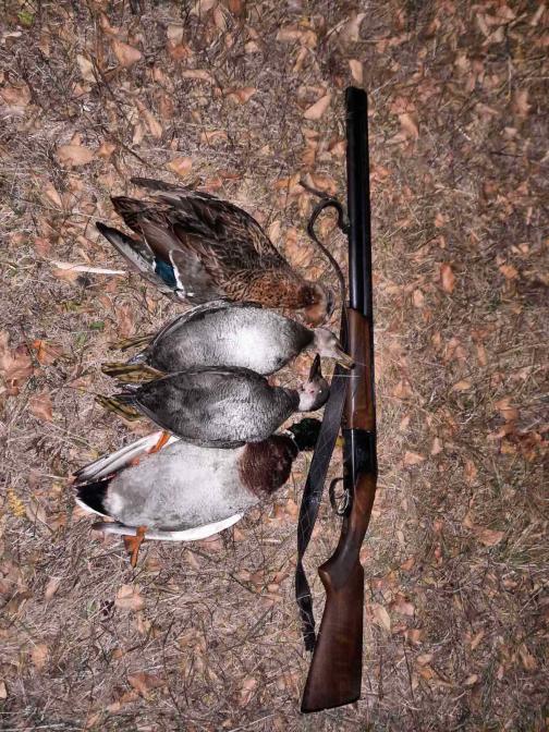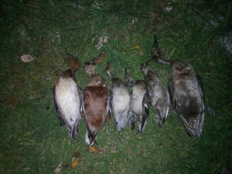 Вся охота 20 минут. Выстрел по налетевшей паре( типа гоголи)) и дуплет по тройке крякашей, два остались. Насмотрелся и поехал щипать. Охота на уток для меня закончена. Ну...может ещё разок...
