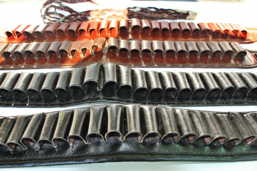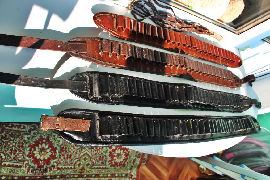 По просьбе форумчан сделал фото покрупнее. 3 патронташа (с ремнями) - по 600р., 1 патронташ без ремня - по 300р. Патронташи практически как новые (но небольшие потертости кожи присутствуют), вхождение патронов плотное, при переворачивании патронташа вверх ногами - патроны не выпадают.