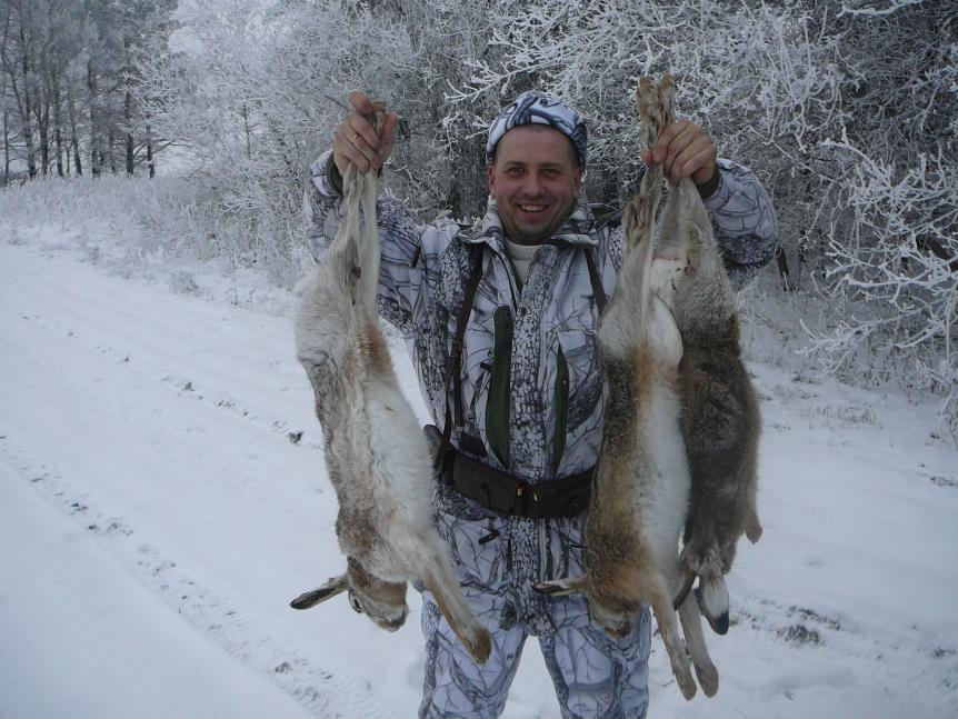 Друзья втроем за четверг-субботу взяли 7 косых. Зайца в этом году немерено особенно в Хорошенском хозяйстве. Даже в Висловском появился. Сегодня ездил с нарезки пострулять следы прямо на выезде из Красного Яра. Такого за 5 лет я не видел...