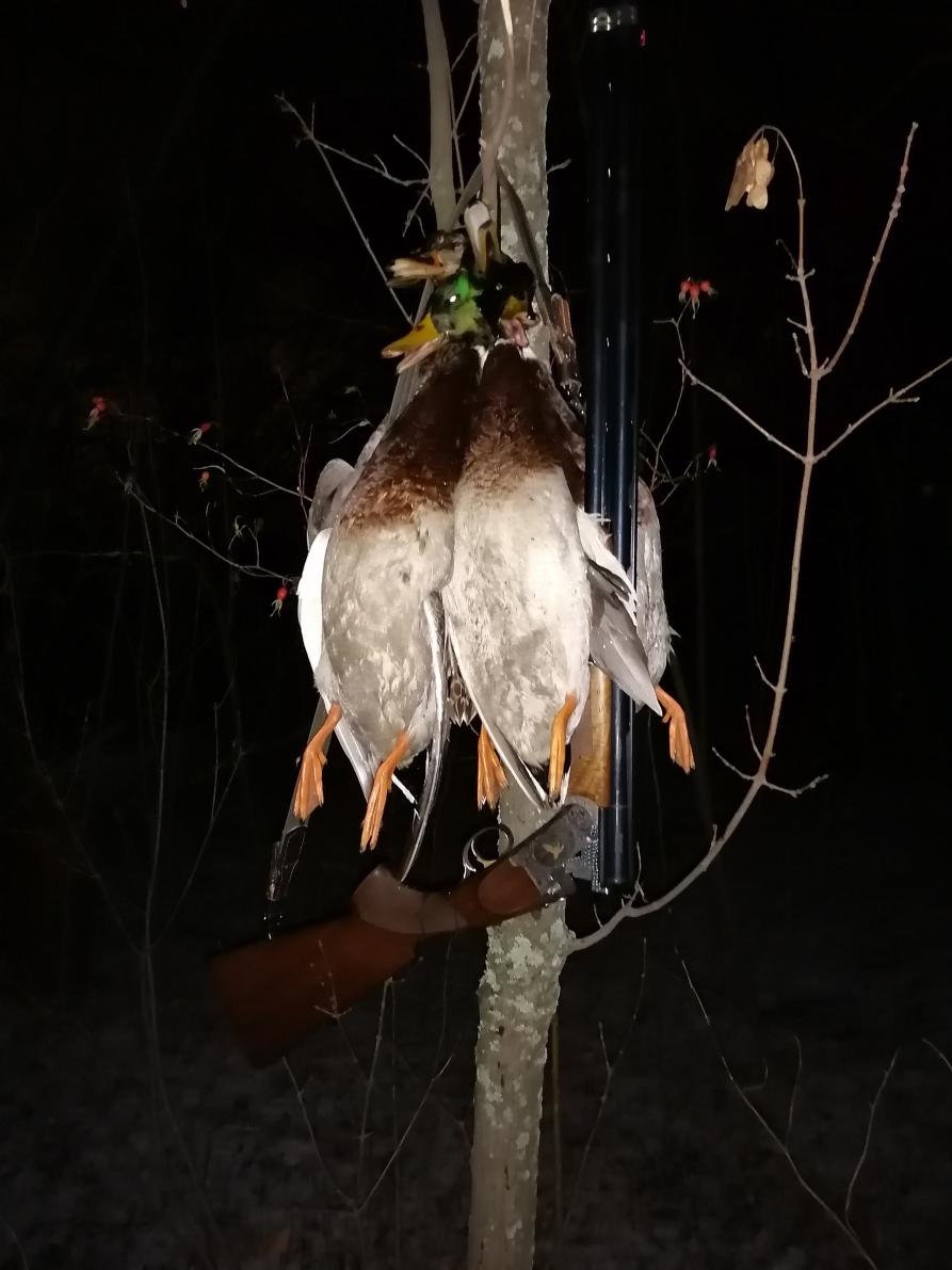 Сегодня всё окончательно замёрзло . Видел 7 крякв - помахал им рукой . Может ещё по курам разок- два схожу и все . На зайцев надо переключаться . Сезон по водоплавающей закончил .