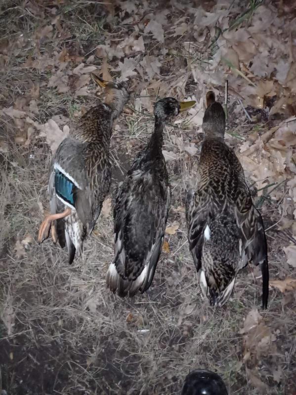 Закрылись по перу. Выехали в пятницу. Снег лупил всю дорогу. С утра в субботу выставили чучела. Утка до обеда моталась. На манок и чучела шла отлично. Взяли трех крякашей и чернеть. И на этом все. Ни на вчерке в субботу, ни утром в воскресенье утки не летали.